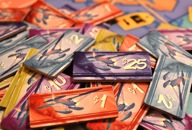 В конце раунда всем выдаётся заработок, который складывается из самой дальней посещённой локации, числа доставленных туристов (если удалось долететь до самого севера, то улов за туристов увеличивается) и бонусов за карты целей.