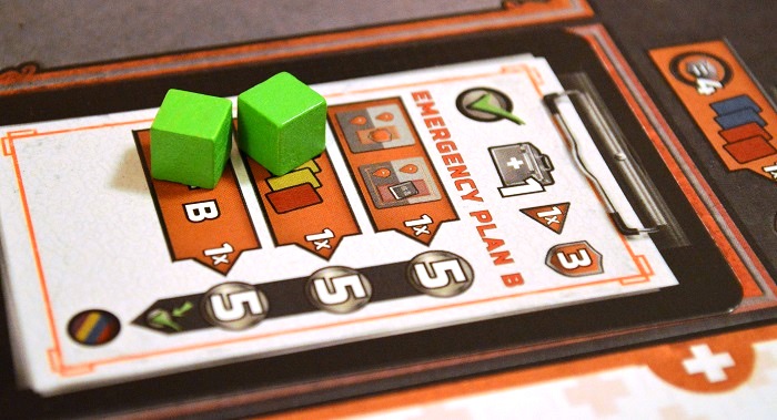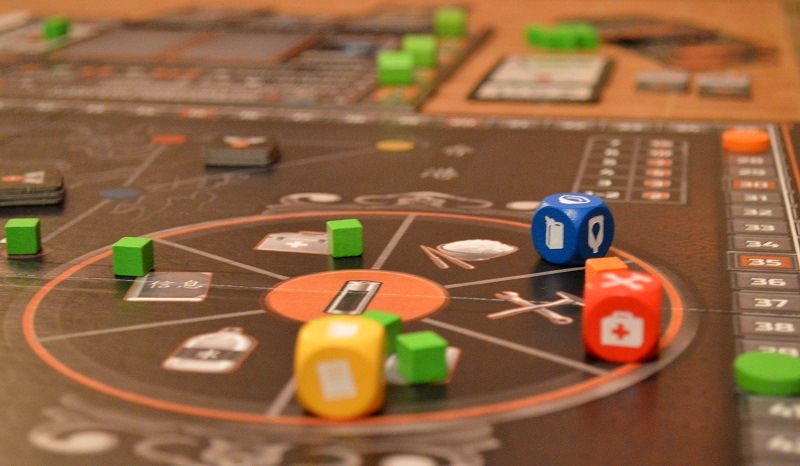 А вот что смогут раздобыть помощники, определяют кубики. Каждый раунд перед фазой планирования бросаются три цветных куба и кладутся на специальный рондель. Выпали синие инструменты? Значит, волонтёр с синим ресурсом сегодня принесёт гаечный ключ. Завтра его улов может оказаться уже абсолютно другим.