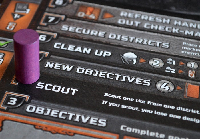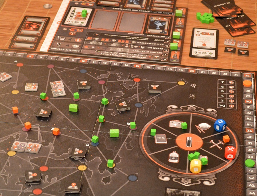 Выполняя цели, можно добавлять в руку новых более крутых специалистов, помечать на карте Гонконга подконтрольные регионы и зарабатывать так называемые “check-marks” – там могут быть как постоянные полезные эффекты, так и одноразовые бонусы, которыми можно воспользоваться в конце раунда.