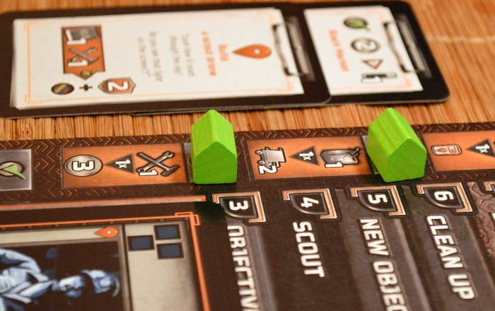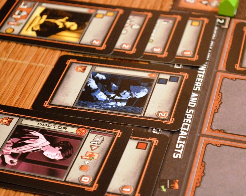 Группа формируется из карт на руке, а после удачной разведки одного из членов команды необходимо оправить в больничку. Делается это рандомно. Раненых персонажей можно вызволить с помощь доктора (ещё и ПО за вылеченного дадут). Если этого не сделать, то в конце партии очки за калек не полагаются. С другой стороны, больничка – отличный способ избавляться от слабых стартовых карт.