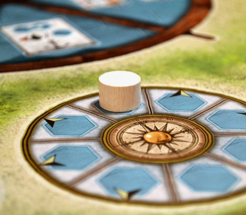 Да, третья механика в Капитанах – это сейчас редко применимый рондель, на котором каждый ход с помощью мипла выбирается основное действие. На два деления топаем бесплатно, а, чтобы пройти дальше, придётся платить монетками.