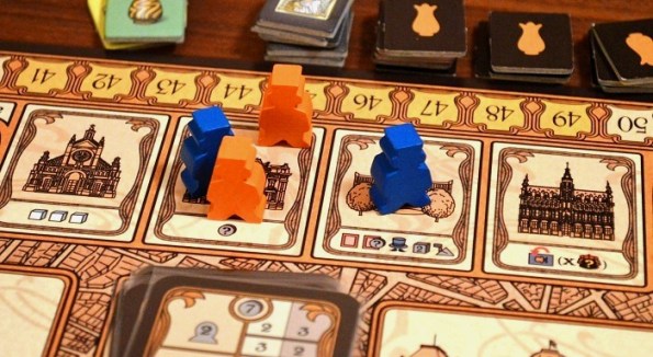 Хитрости же начинаются с того, что для городской площади и поля ар-нуво правила выставления рабочих существенно отличаются. Если городские ячейки можно оккупировать повторно, просто посылая на одного рабочего больше, то ячейки ар-нуво блокируются и, вообще, фишки на них являются ещё и ставками, посему с рабочими нужно выкладывать хотя бы одну монетку.