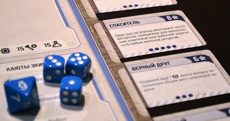 Следующий удручающий момент – результат выполнения целей. С каждым сценарием становится всё больше карточек и спец-требований, куда следует посылать кубы, но взамен игроки не получаются практически никаких плюшек. Выполняя задачи, экипаж просто избегает штрафов. Посему единственный позитивный момент в игре – это возможность прокачки за счёт карт навыков. Хотя и тут у меня есть претензия к тому, что имеется потолок по рангам, после чего эти ранги уже никому не нужны.