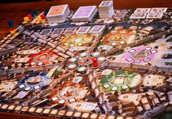 Вообще, вся эта агрессия и активное взаимодействие в такой не самой простой и быстрой игре создаёт странное ощущение, что перед нами евро старой школы. С другой стороны, игру трудно назвать лаконичной. Тут имеется достаточно много нюансов: несколько вариантов действий в локациях (причём, многие позволяют заглядывать в верхние карты колод – скукотища), возможность ходить на свои же здания, куча различных ограничений по числу карт и жетонов.