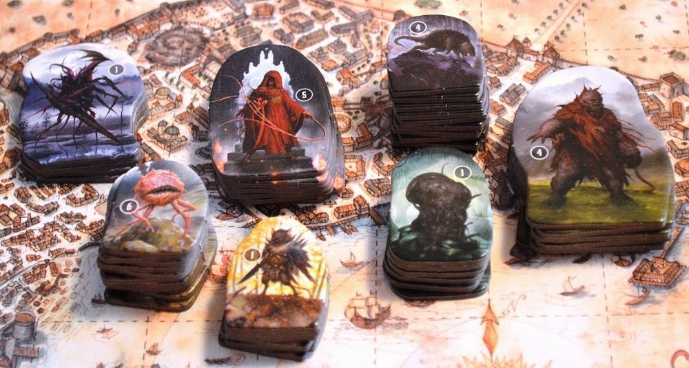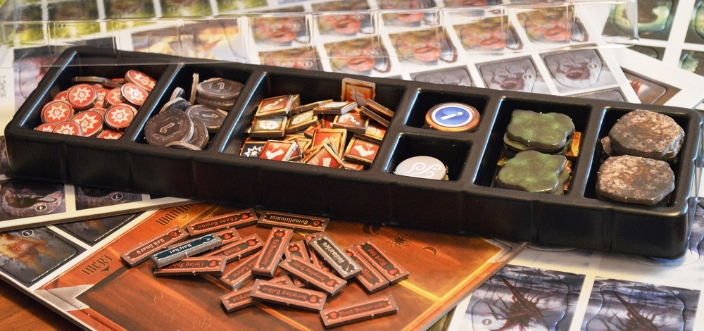 Хранить всё стало проще. Для жетонов даже небольшой лоток имеется с крышкой, хотя туда всё влезает впритык. А вот для монстров идут пакетики, их предлагается хранить кучей в большой отделении органайзера.