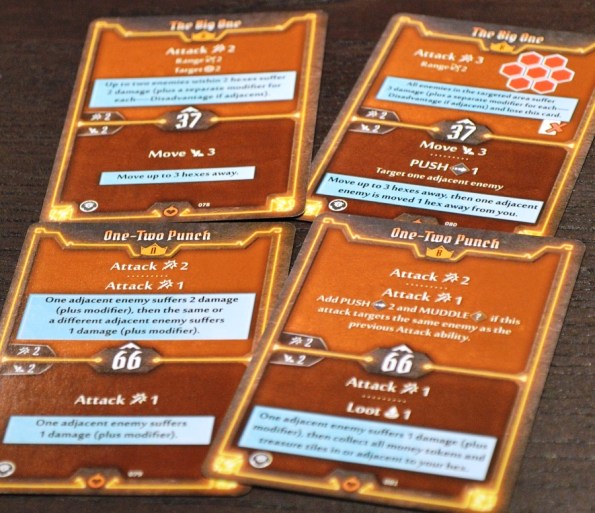 С монстрами похожая история. Для начала для них достаются только 4 карточки с пометкой “basic”, и лишь к четвёртому сценарию можно взять нормальные стопки из 8 карт.