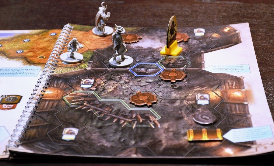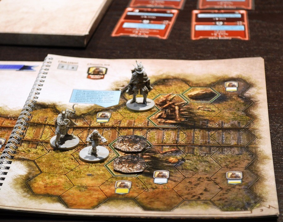 В первый день мы легко отыграли четыре обучающих сценария. Каждый из них примерно на час-полтора. Перед этим мне пришлось лишь выдавить и рассортировать компоненты (а именно, сложить по пакетикам жетоны и карточки монстров) и полистать правила, чтобы понять принцип подачи материала.