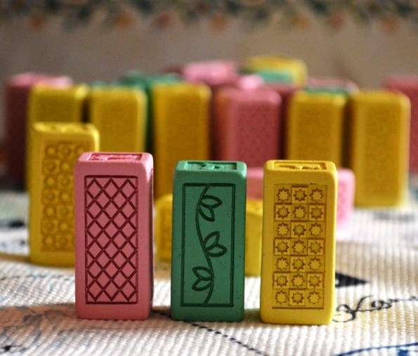 Фишки-бруски очень приятные на ощупь и имеют такой неидеальный hand made вид. Коврик компактный и лаконичный. Всё вмести смотрится стильно. Более того, тяжёленькие бруски не позволяют коврику топорщиться и сами его выравнивают (хранится поле в скрученном виде).