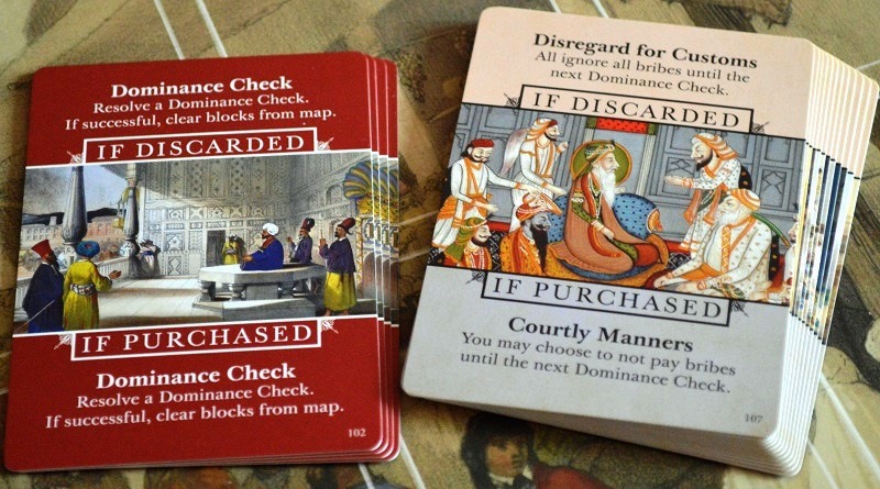 Игру я ещё толком не изучал, знаю только, что это, в принципе, несложный (хмм… автор тут явно лукавит) карточный tableau builder (драфтим карты и шлёпаем на стол) с условным полем и крепкой исторической составляющей.