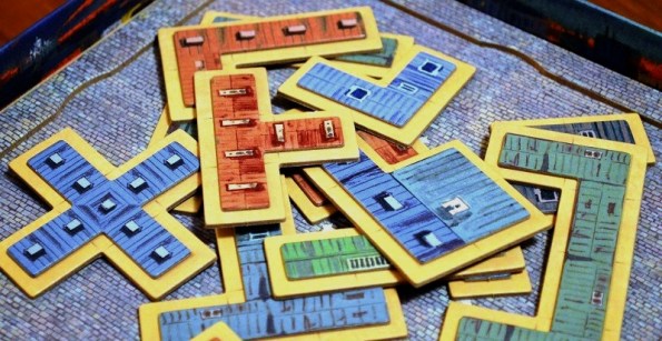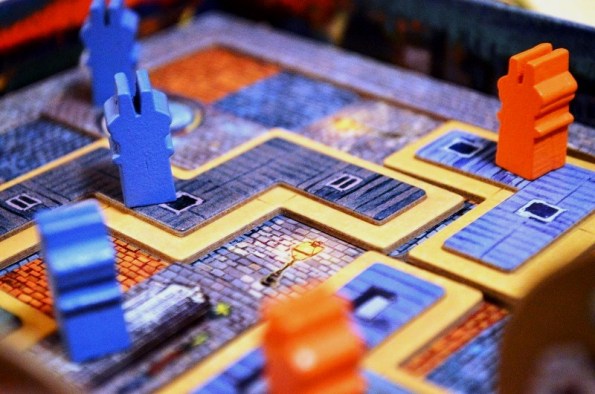 В чём же тут хитрость? Во-первых, игроки формируют поле общими усилиями. Во-вторых, каждый тайл брусчатки условно делится на четыре клетки, и эти клетки могут быть не только твоего цвета, но и цвета соперника или джокером, который подходит всем. Ну и, разумеется, на тайлах встречаются заветные фонари, они являются одним из ключевых ресурсов при заработке победных очков.