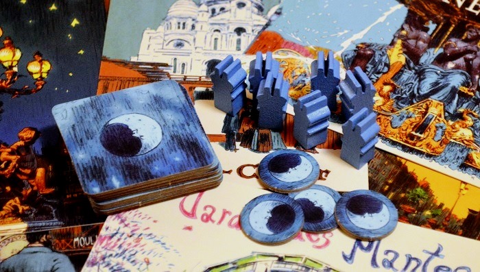 А ещё тут ну очень симпатичное оформление: изумительная заглавная иллюстрация на коробке, карточки спец-действий в виде открыток с достопримечательностями Парижа, миплы в форме дымоходов.