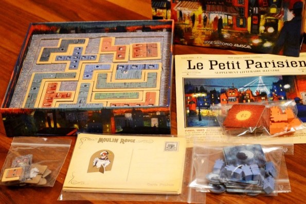 В Paris интересен не только сам процесс, но и подсчёт очков. Сперва вы считаете ПО за освещённые здания, умножая размер здания на число фонарей, расположенных рядом (но не диагонально). Затем вы получаете ПО за самую большую группу зданий (здания, у которых хотя бы одна общая клетка). Ну, и, наконец, ко всему этому приплюсовываете бонусные очки за определённые открытки.