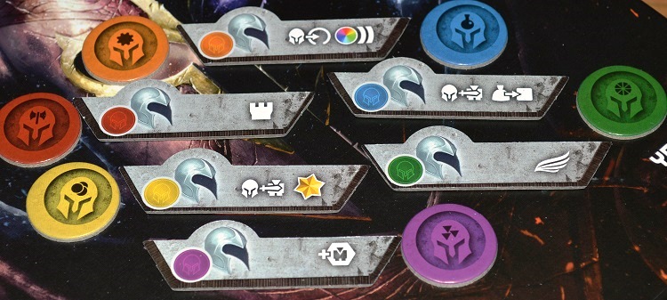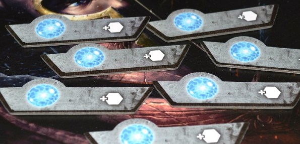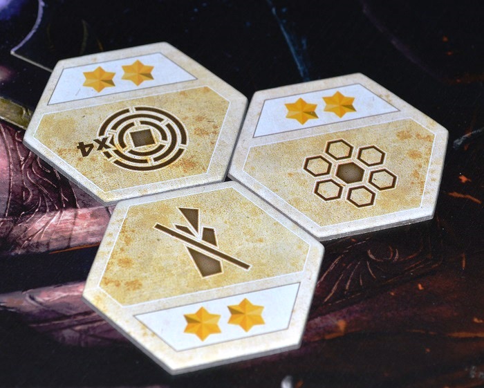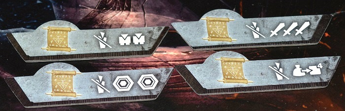 С помощью второго, пожертвовав трофейным призраком, можно получить неплохой бонус в виде двух отрядов, трёх атак, тепепорта на два любых гекса или четырёх кубов из мешка.