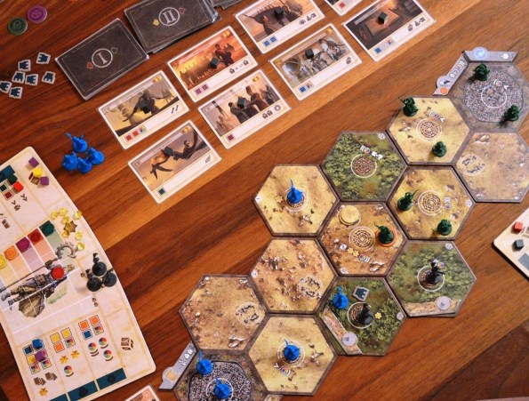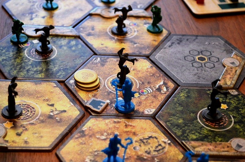 За действия исследуем и захватываем гексы, покупаем технологии, добавляем в мешок дополнительные кубы, нанимаем отряды, перемещаемся и сражаемся с соперниками или нейтральными призраками.