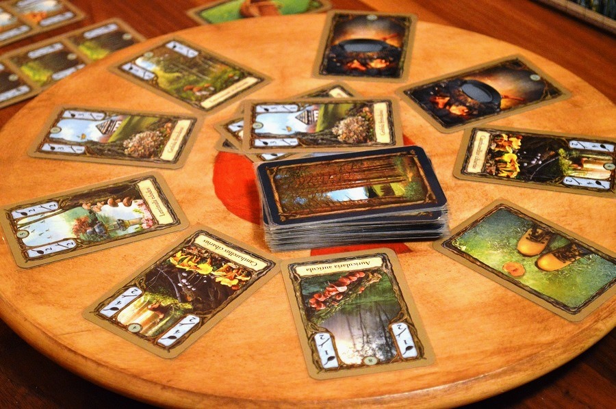 Fungi (Morels). Подзабытый дуэльный филлер на сбор сетов с такой редкой темой похода в лес по грибы. Что-то типа немножко усложнённого Джайпура, только без погони за жетонами. Но всё равно неглупый и азартный. Нужно и за оппонентом следить, и за тем, как быстро иссякает колода, ведь можно банально всё не успеть.