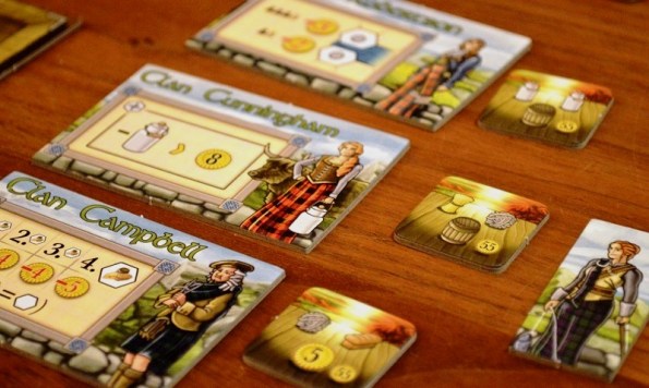 Даа, кланы Каледонии классные, правда никак не научусь нормально в них играть – жена постоянно выигрывает)) Поддерживаю, миниатюрность компонентов радует, и в коробку влезает даже с коробочкой для мелочей, из которой удобно доставать сырье и продукты.