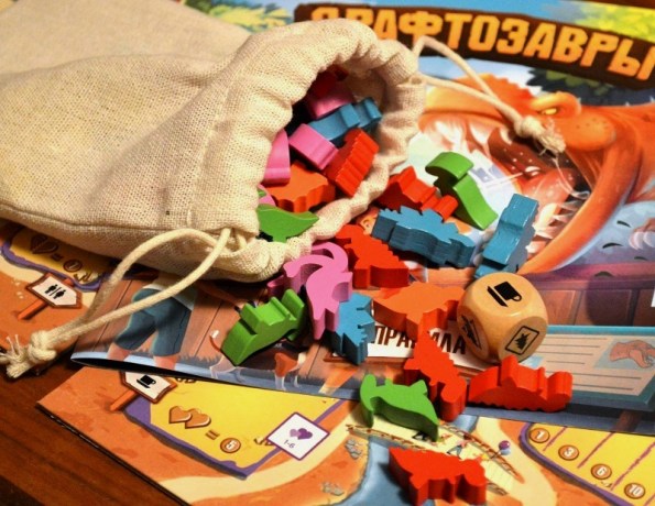 Принцип драфта стандартный: суём рук у в мешок, тащим вслепую по 6 динозавров, выбираем одного, а остальных в кулачке передаём соседу. Такой обмен, конечно, не совсем удобен, особенно, если у вас маленькая ладошка, но приноровиться можно.