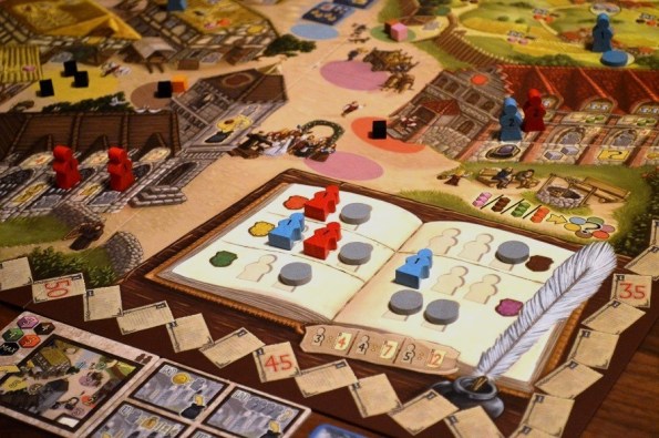 Но не буду лукавить: если в своё время игра выглядела свежо не только благодаря центральной механике времени и кубиков действий, но и за счёт способов заработка победных очков (рынок, продвижение в церкви и совете, путешествия и т.д), то сейчас последнее выглядит довольно обыденным и простеньким.