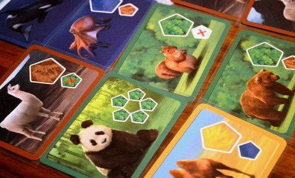 Вдобавок, в начале партии каждому даётся секретная цель на местность конкретного типа – чем больше налепил, к примеру, водоёмов, тем больше очков получишь. Правда, карточки зверушек такого же типа вместо стандартных двух очков принесут лишь одно.