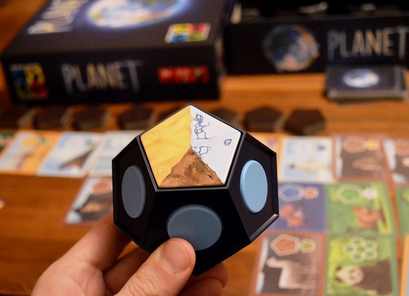 Planet. Довелось попробовать семейную игрушку автора из Литвы, который также отметился Перекати-ёжиком (Hedgehog Roll), получившим в прошлом году “Детскую игру года в Германии”. Выглядит Планета эффектно благодаря объёмным планетам, на грани которых крепятся магнитные тайлы местности.