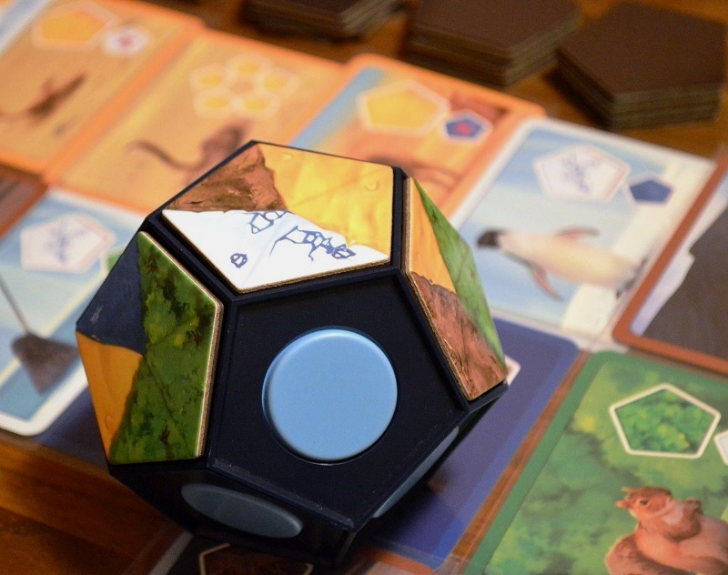 В принципе, конструктор 3D-планет и есть основная фишка игры, так как в остальном перед нами вполне заурядный драфт тайлов и выполнение целей, которые задаются случайно разложенными карточками зверей. По задумке игроки – всемогущие боги, которые создают мир с нуля и заселяют туда живность. Но живность капризная и идёт только к тому, кто лучше удовлетворит её райдер. Одному огромный океан подавай, другому – много мелких пустынь, третьему – лес, не граничащий с ледниками.