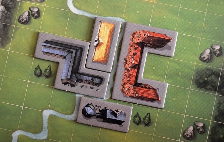 Итак, правила следующие. Начинать нужно обязательно у реки, то есть, первое здание должно хотя бы одной стороной прилегать к воде. Каждый следующий тайл нужно пристраивать к ранее выложенному. Закладывать реку нельзя, но строить по обе стороны можно – соседние здания при этом считаются прилегающими.
