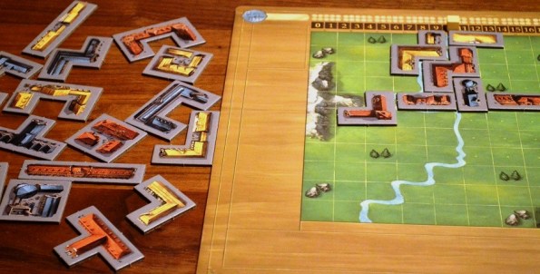 Честно говоря, изначально я ожидал какого-то простенького пасьянса на заполнение планшета, но на деле игрушка заставила поломать голову даже в первых партиях. Усложняет задачу не только случайных выход зданий и река, проходящая сквозь весь планшет, но и правила обязательного соседства. И ещё эти камни…