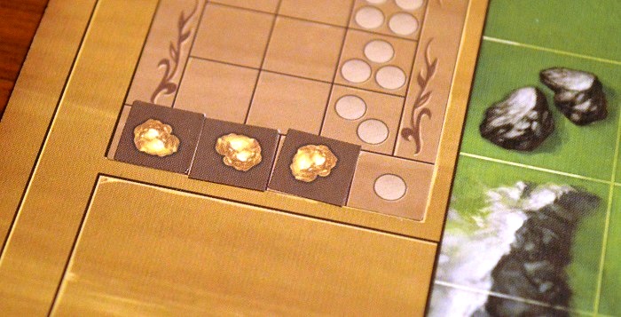 Итак, в прошлый раз мы остановились на том, что в поселениях обнаружились залежи золота. На указанные клетки наклеились рудники, а рядом с застраиваемой областью появилась первая вспомогательная наклейка для накопления слитков.