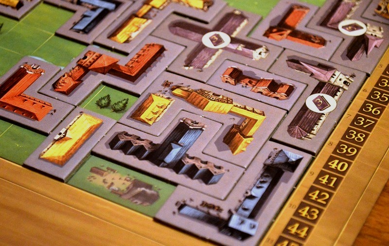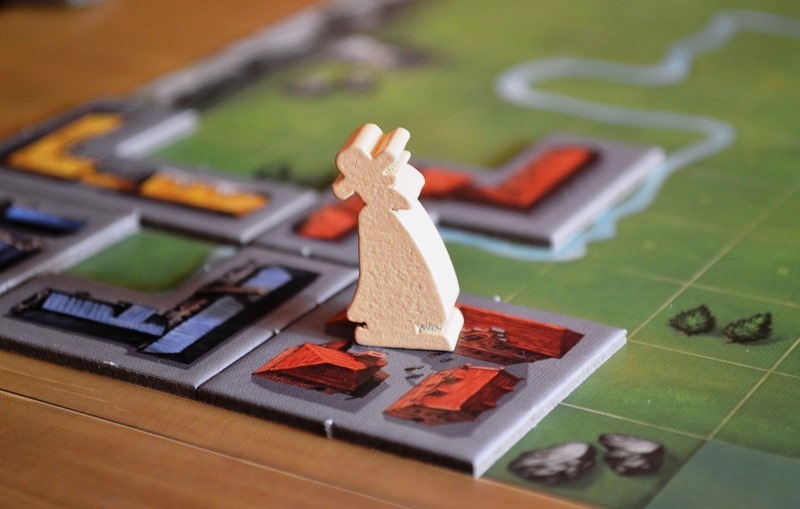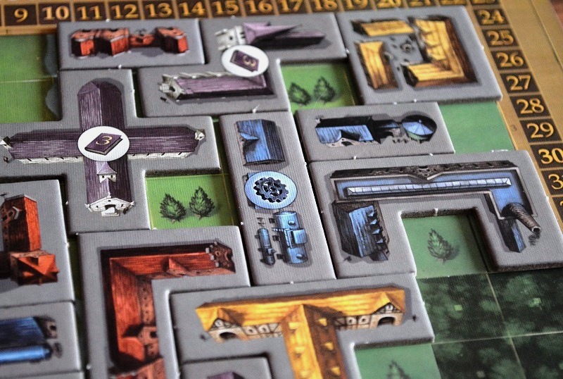 Зато появилось два новых источника победных очков. Первый связан с фишкой инвестора: игрок получает одно очко каждый раз, когда пристраивает здание к выложенному в предыдущем раунде. Для этого, собственно, и нужен мипл инвестора – помечать только что выложенный тайл.