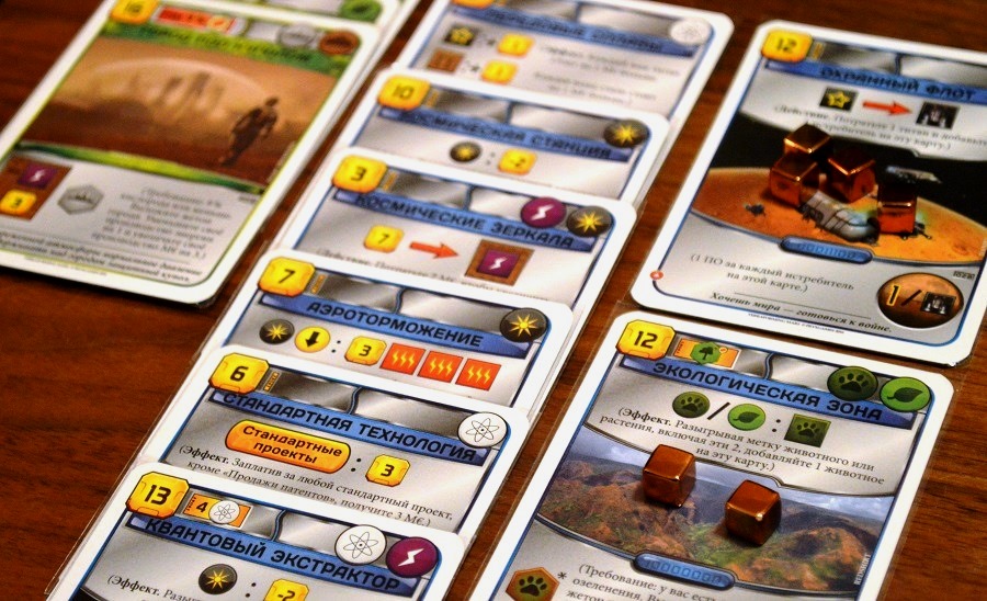 Как и полагается, к эффектам карт пролога подобраны тематичные названия, а сами эффекты достаточно разнообразные. Понятное дело, что многие повышают производство или непосредственно дают ресурсы. Другие позволяют сразу же повысить глобальные параметры (допустим, выложить 2 океана), добрать проектов и т.д.