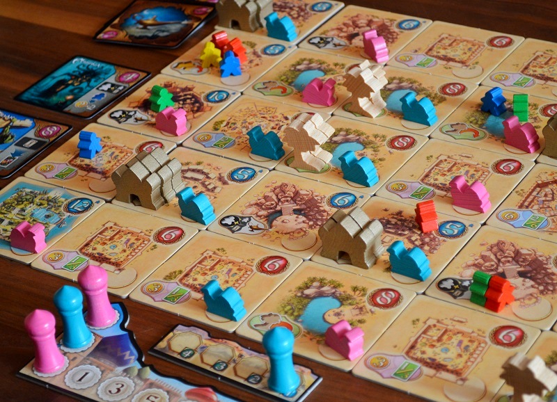 Five Tribes – это такой большой и красивый point salad абстракт на механике “манкала”. Только тут вы раскладываете не цветные камешки по чашам, а размещаете миплов по тайлам. Причём, и у миплов, и у тайлов имеются различные хитрые свойства.