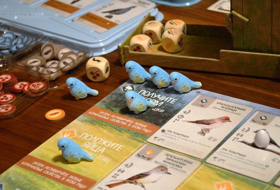 Наполнение богатое, особенно что касается всяческих деревянных фишек. Картон местами тонковат, но вроде всё ровное и вырублено аккуратно.