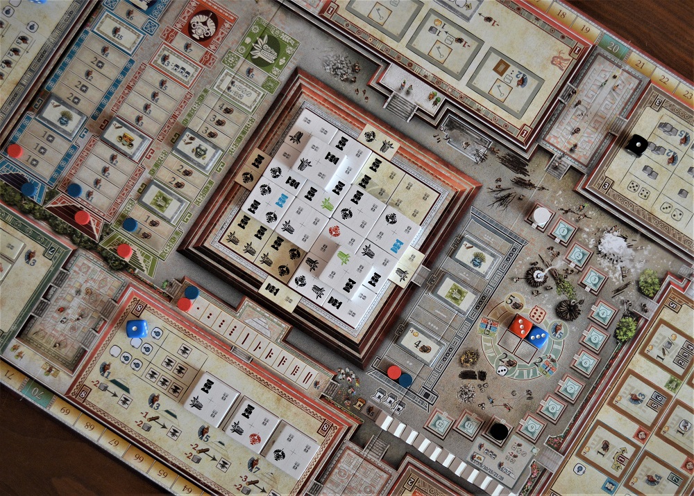 Teotihuacan: City of Gods. А вот тут после недавней партии в Tzolk’in от того же автора, понял, что есть некоторые моменты в игре, которые в Тео меня не совсем устраивают.