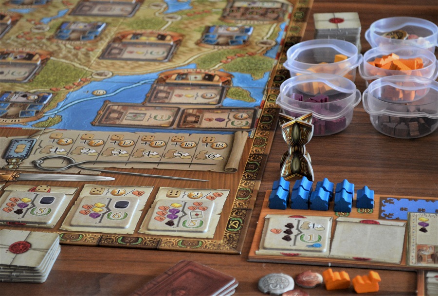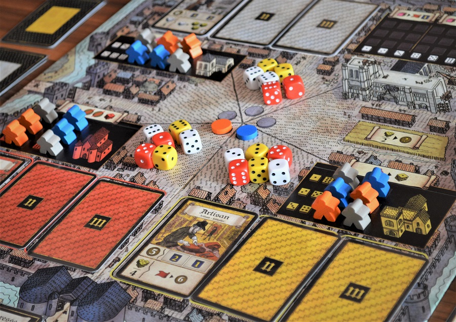 Интересно, что пока перечитывал правила, поймал себя на мысли, что всё забыл и продираюсь с трудом. И дело не в сложности, просто даже сейчас механики выглядят свежо и необычно. Полукооперативный элемент при борьбе с пакостными карточками событий; контроль зданий, приносящих кубики; возможность покупать вкусные кубы у оппонентов; механизм усмирения рандома за влияние; секретные карты целей, очки за которые получат все игроки и, конечно, же хитрые карты действий.