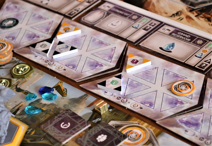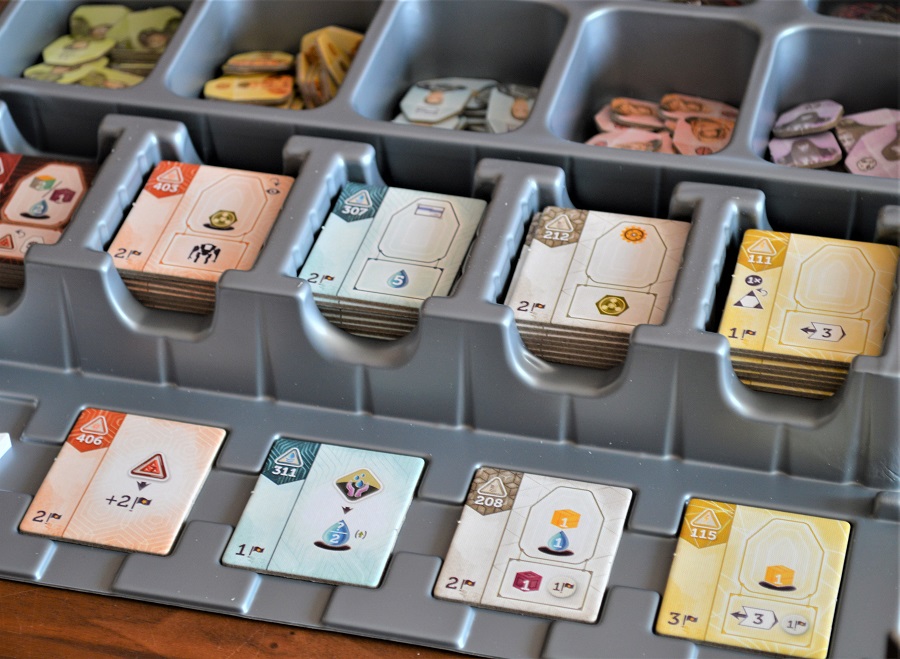 Да и, в принципе, процесс выглядит довольно целостным. Для меня лишь немного выбиваются жетоны прорывов – безликие треугольники, квадраты и круги с разными символами. Они как бы идут в качестве дополнительного требования для постройки суперпроектов (большие здания), но сами по себе дают очки по принципу унылых сетов.