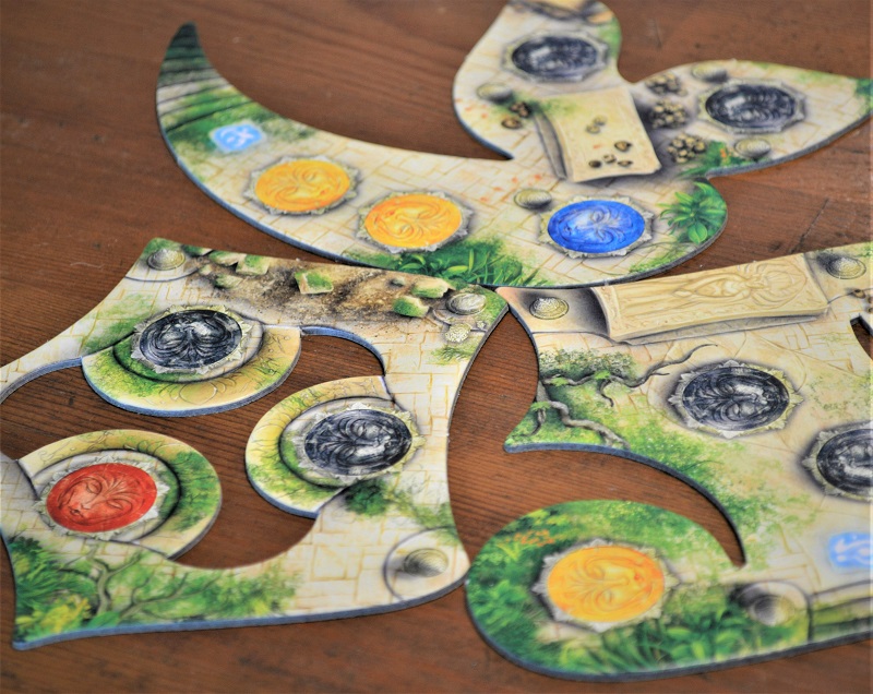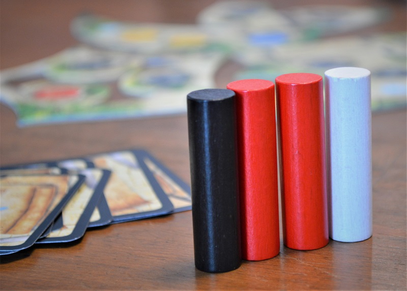 Цветные колонны достаются из мешка случайным образом (при игре вчетверём все тянут по 4 штуки), но их можно свободно обменивать на небольшом рынке. Правда, рынок достаточно быстро теряет свою привлекательность, ибо все стараются слить ненужные цвета.