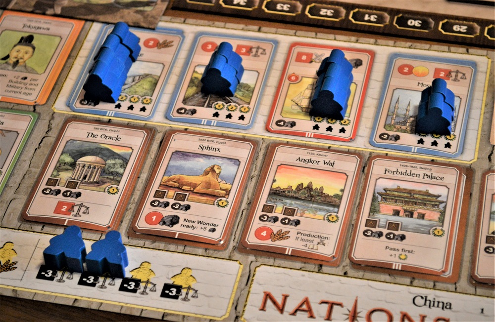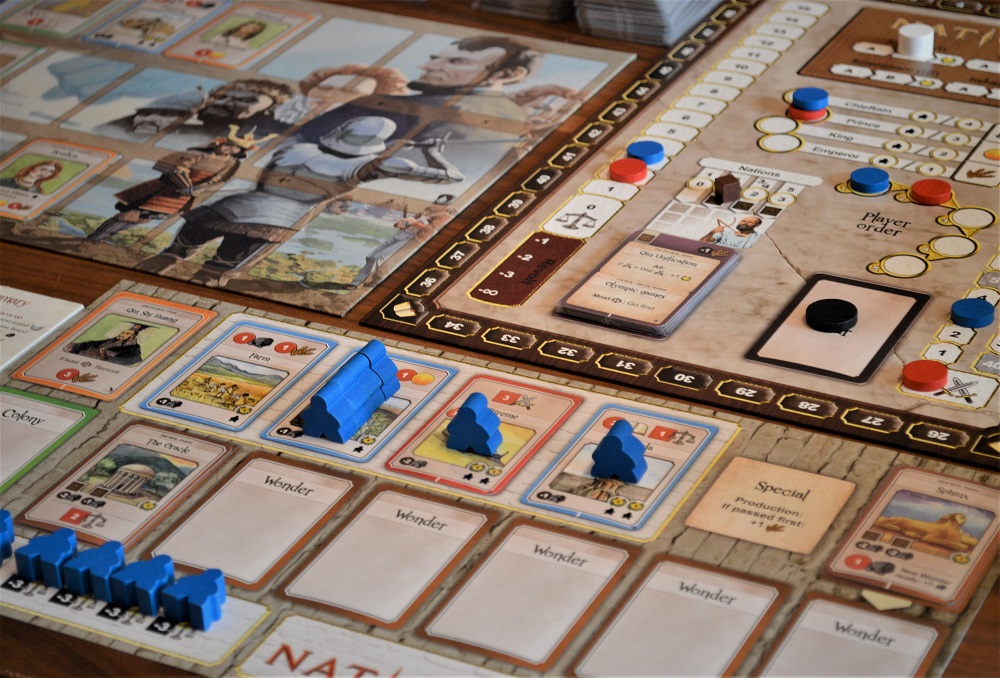 Nations. Ещё одна несправедливо забытая коробка. Теперь уже точно можно сказать, что Nations выжила из коллекции Through the Ages (тоже любимую), которая ушла на продажу по причине длительности партии и высокого порога в освоении. Нации гораздо проще, менее агрессивные и длятся час-полтора. Плюс, они отлично идут на двоих.