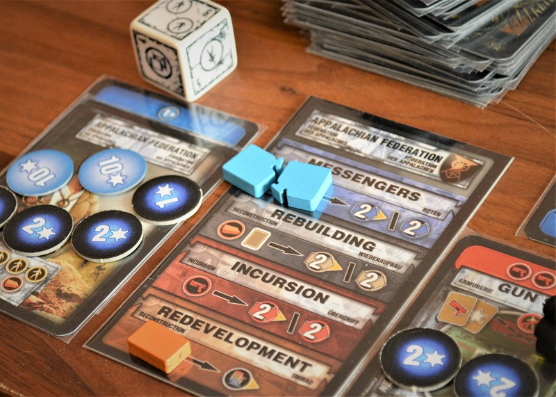 Действия разыгрываются с помощью карт. Колоды у сторон уникальные, и каждую карту можно сыграть двумя способами: выполнить мощное центральное действие (и зачастую, после этого убрать карту в коробку) или же продвинуть один из маркеров или жетоны на треке расследования.