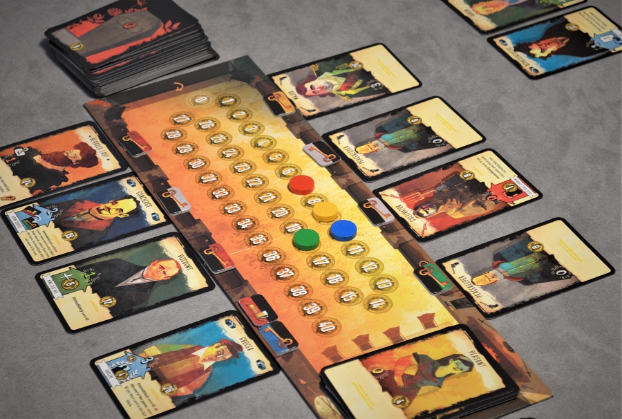 За партию набирается очень много очков – мы на третий или четвёртый круг на треке зашли, но, к сожалению, никаких маркеров для этого не предусмотрено. В целом, симпатично за счёт стекляшек, но по механикам ничего нового. Но, если нравятся подобные штуки, то стоит попробовать. Для меня слишком сухо и скучновато. 6.5/10.