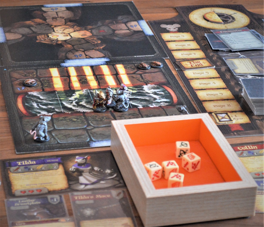 Мыши сложные (ненужных нюансов куча) и рандомные, мы во взрослой компании еле-еле прошли. Этим и игра не нравится, сказка классная, оформление тоже, много хороших идей и механик (колесо с сыром, шкала инициативы), но и много чего лишнего. Поэтому, чтобы не мучиться, мы просто играем с простыми энкаунтерами и сохраняем между сценариями всё нажитое )).