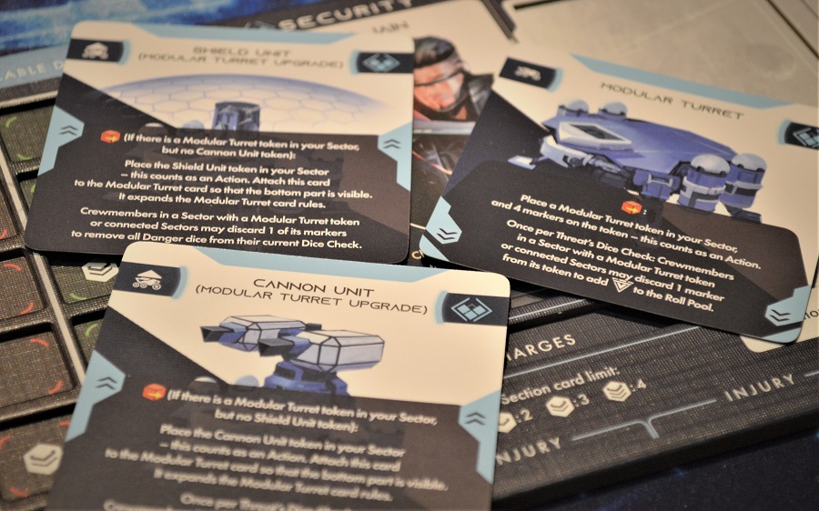 Другими словами, после потной катки на корабле в кампании идёт развилка. Исходя из выбора, дают новый отсек (военный или дипломатический), новую колоду событий, стопку планет и новые кубики с двойными символами.