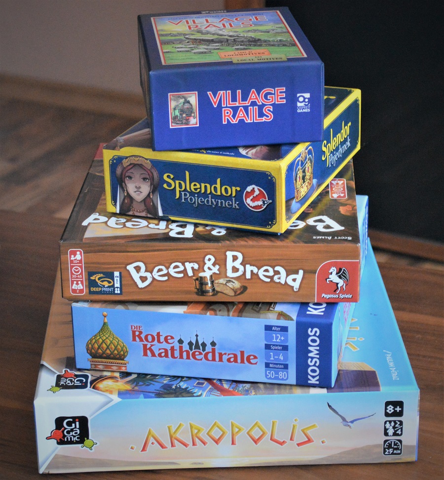 Village Rails. Взял после обзора Shut Up & Sit Down и отзывов друзей. Снова игра а-ля “большое евро в маленькой коробке” (ну точно тренд года). На деле приятная головоломка на эффективное размещение карт путей и целей. Чуточку не дотянула до топа.