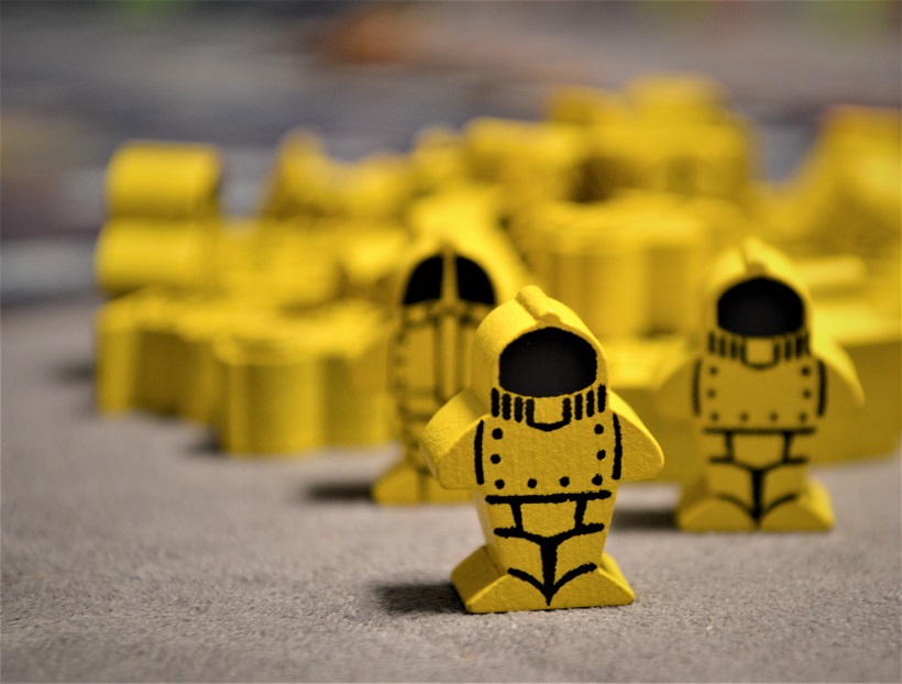 Мне нравятся игры на развитие своего планшета и построение движка, и тут это присутствует. Ещё любопытно обыграно размещение рабочих: нужно потратить кислород, причём, количество зависит от удалённости целевого модуля (чем дальше карта от планшета, тем больше кислорода требуется). Ну, и идея с куполом довольно занятная.