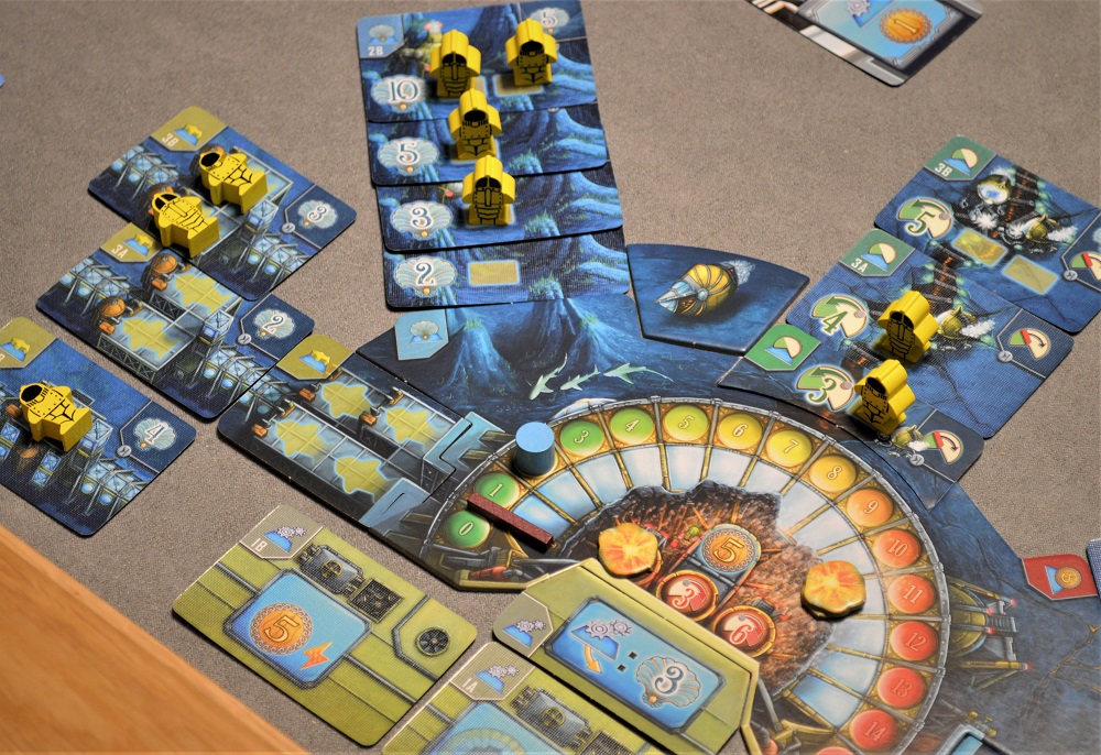 Партия длится 3 раунда, во время которых приобретаются карты модулей и выкладываются вокруг персональных планшетов игроков. Покупка в каждом раунде проходит в два этапа: сперва карты выходят на рынок случайным образом, а потом игроки сами формируют лоты для аукциона. Платить за модули придётся монетами и чаще “прочностью” купола. Кроме получения модулей игроки могут посылать батискафы (миплов) на задания (пристроенные модули), тратя на это кислород.