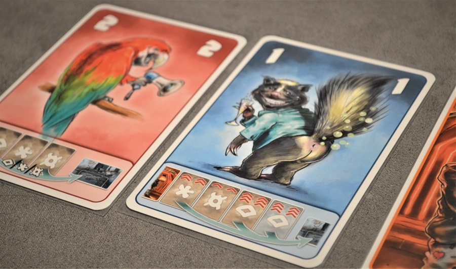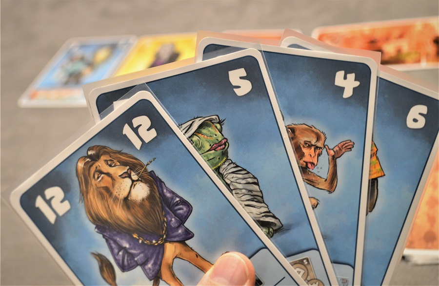 Повторюсь, каждый из 12 зверей уникален, и почти все свойства читерские. Крокодил съедает всех, кто меньше его номиналом, тюлень перекладывает вход на противоположную сторону, скунс сбрасывает из очереди две самые высокие карты и т.д.