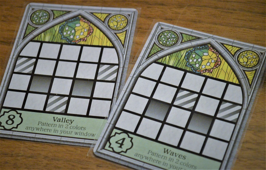 Ну, и, что мне особенно понравилось, так это новые личные цели Flourish на расположение кубов в витраже. По две карточки выдаётся каждому, и в начале партии нужно решить, сколько намереваешься оставить. За каждую оставленную полагается дополнительная фишка привилегии. Ну, а, если к концу цель не удастся выполнить, то лови штраф.