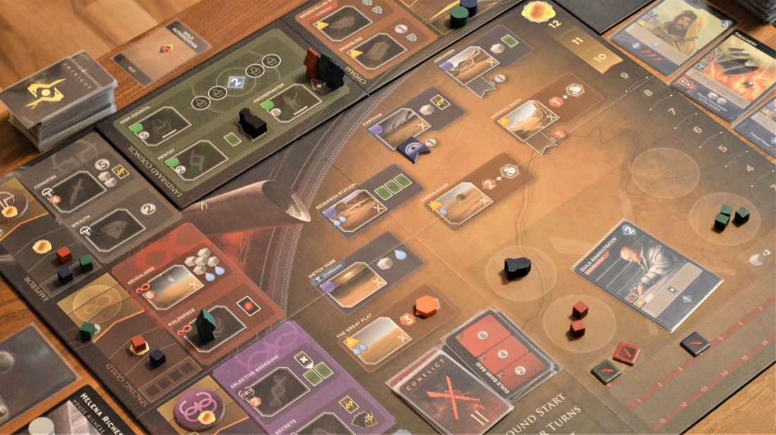 Короче говоря, блиц строго рекомендую. Он избавляет от долгой раскачки и сразу же бросает в гущу событий. Повысил Dune: Imperium оценку до 9/10. Чуть ли не единственный колодострой, в который хочется играть. Да, ещё Арнак, но игры дарят абсолютно разные эмоции. Арнак – это красивое почти медитативное евро на ресурсные комбо, а Дюна – напряжённое противостояние, где тебя постоянно подрезают. После партии голова всегда ватная, а мозг истощён.