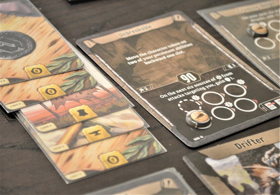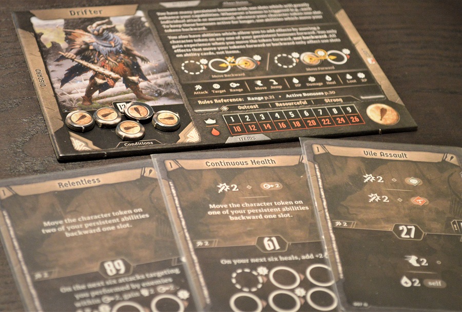 Мне достался Drifter, что иронично, ибо прохождение Глума я тоже начинал за класс иноксов. На мой взгляд, это самый простенький перс. Из уникальных особенностей – часто встречающееся свойство, позволяющее двигать назад жетон на активной карточке. Неудивительно, что почти половина стартовых карт обладает долгим (persistent) эффектом на усиление атаки, защиты, движения и т.п.