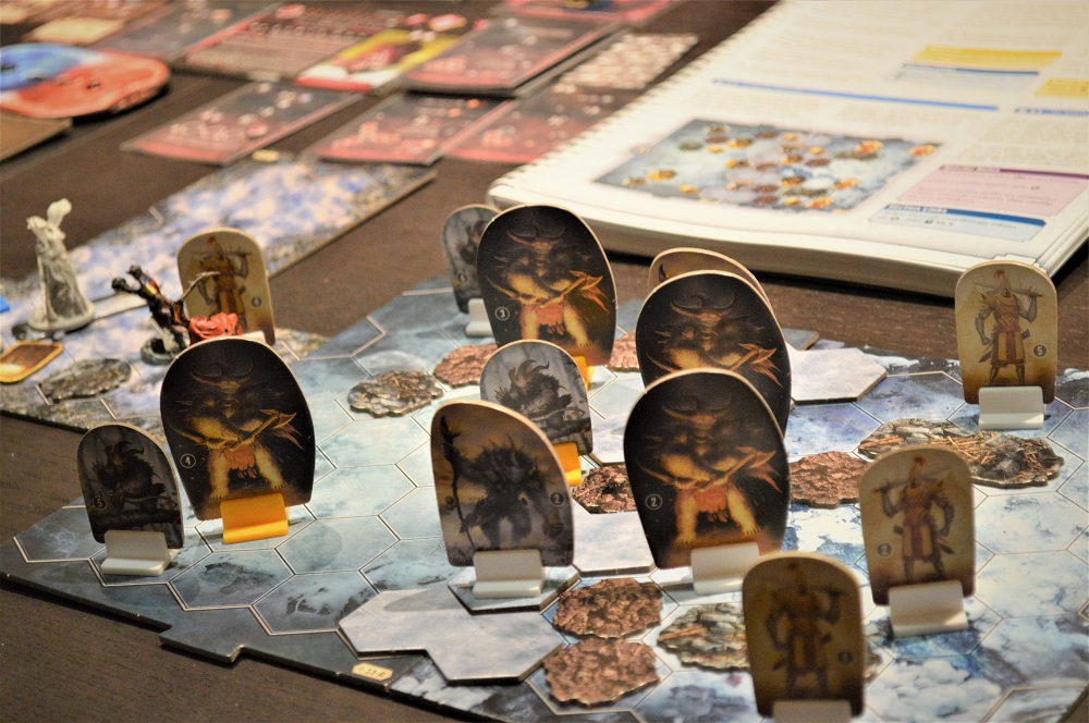 Нулевая миссия совсем простенькая и, можно сказать, что обучающая: часть карт действий не используется, колода для монстров тоже – у них постоянное значение движения и атаки. Мы, разумеется, начали с нулевой, ведь Глума много не бывает! На самом же деле это действительно неплохой вариант всё вспомнить спустя несколько лет. Да и новичку так проще влиться.