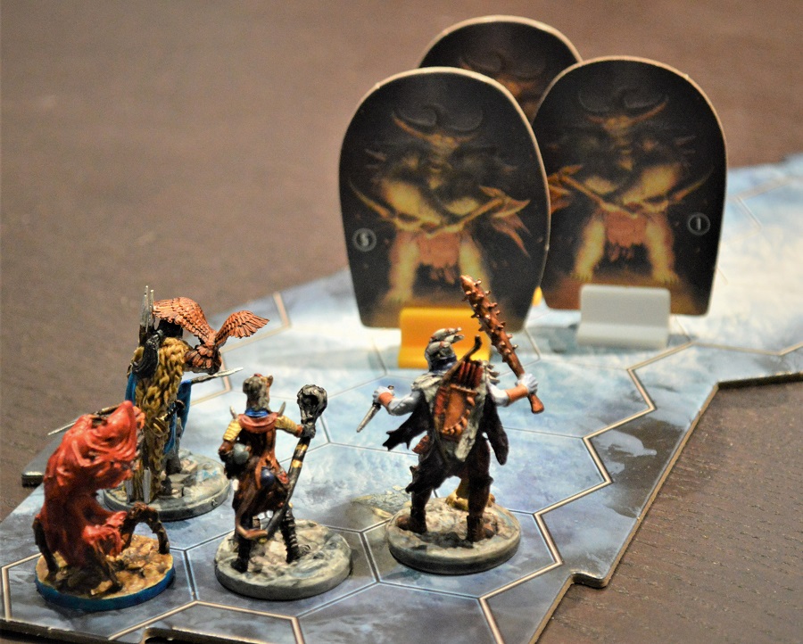 Ну, и, как и в “Челюстях льва”, имеются жетоны для отслеживания очерёдности хода. Решили их тоже использовать, так как одновременно задействовано уж больно много разных персонажей: 4 героя и обычно 3+ врага.